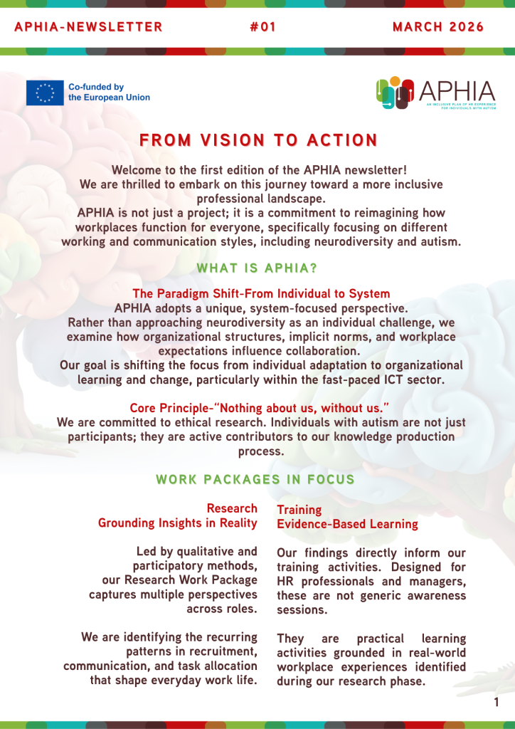 Rather than approaching neurodiversity as an individual challenge, APHIA adopts a system-focused and bottom-up perspective. The project examines how organisational structures, implicit norms, and workplace expectations influence collaboration and inclusion, especially within fast-paced sectors such as ICT. By doing so, APHIA aims to shift the focus from individual adaptation to organisational learning and change.
