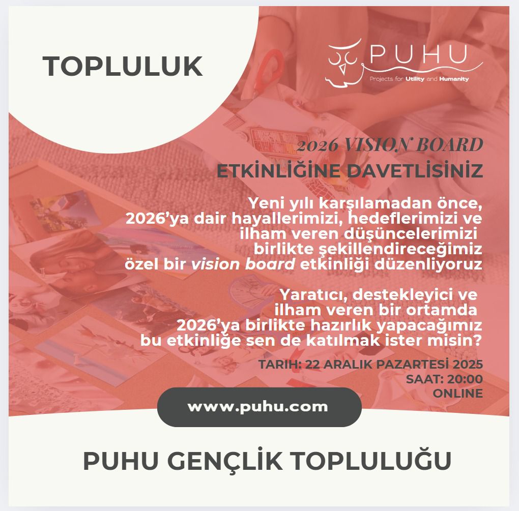 22 Aralık’ta PUHU topluluğu olarak çevrimiçi bir araya gelerek 2026 Vision Board etkinliğimizi gerçekleştirdik.